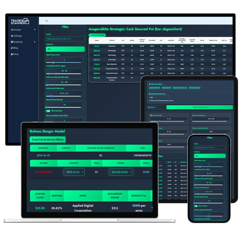 „Früher saß ich jeden Abend 1–2 Stunden an der Optionsanalyse. Der OptionScanner zeigt mir in Sekunden die besten Setups – inklusive Risiko, Prämie und Erfolgswahrscheinlichkeit. Ich treffe schneller Entscheidungen und habe wieder mehr Zeit für meinen Alltag.“